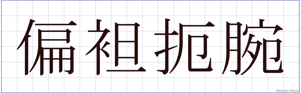 偏袒扼腕 (へんたんやくわん)Kanji et modèles d’écriture |