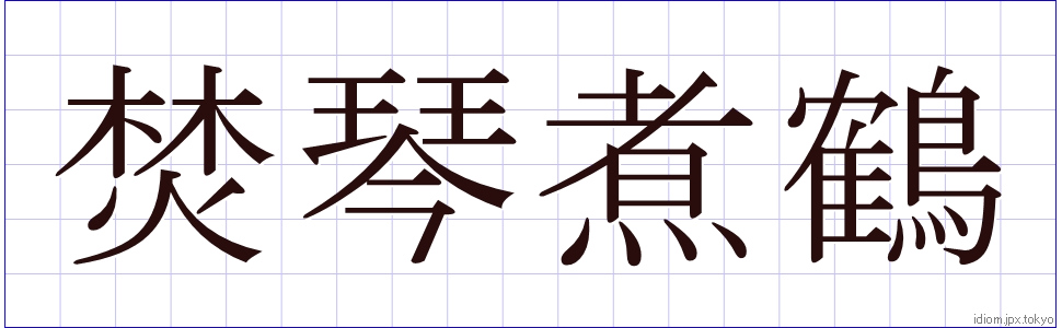 焚琴煮鶴 (ふんきんしゃかく)Kanji et modèles d’écriture |