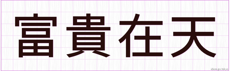 富貴在天 (ふうきざいてん)Kanji et modèles d’écriture |