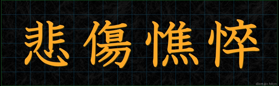 悲傷憔悴 (ひしょうしょうすい)Kanji et modèles d’écriture |