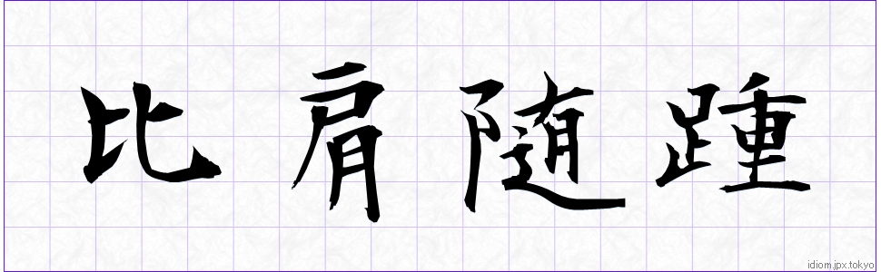 比肩随踵 (ひけんずいしょう)Kanji et modèles d’écriture |