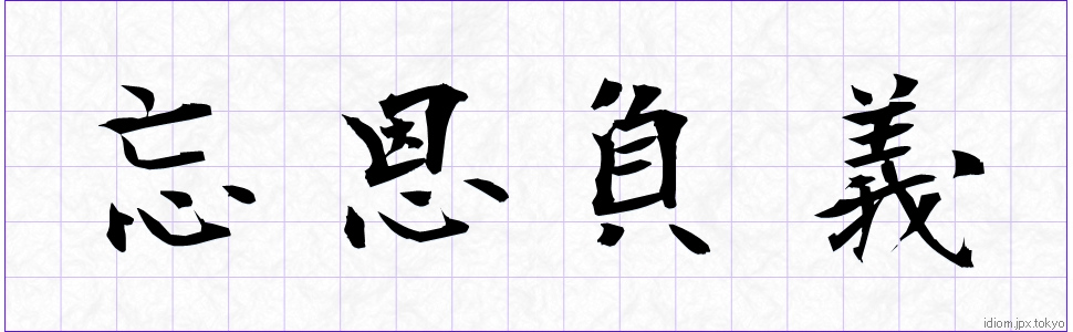 忘恩負義 (ぼうおんふぎ)Kanji et modèles d’écriture |