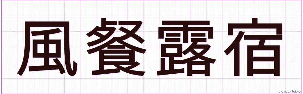 風餐露宿 (ふうさんろしゅく)Kanji et modèles d’écriture |