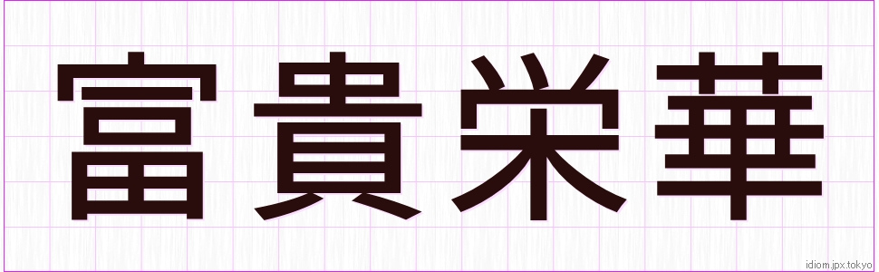 富貴栄華 (ふうきえいが)Kanji et modèles d’écriture |