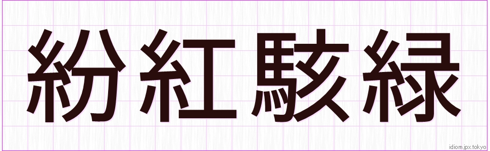 紛紅駭緑 (ふんこうがいりょく)Kanji et modèles d’écriture |