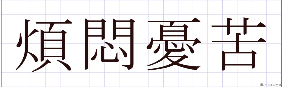 煩悶憂苦 (はんもんゆうく)Kanji et modèles d’écriture |