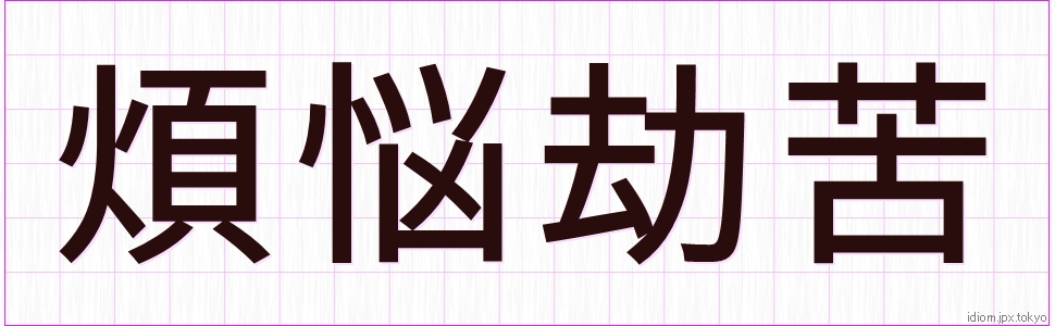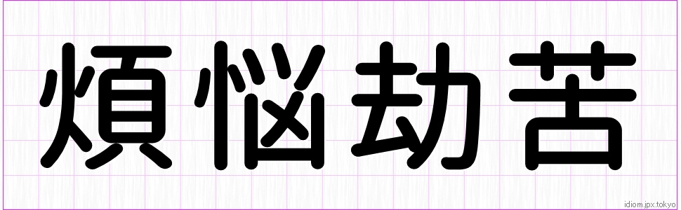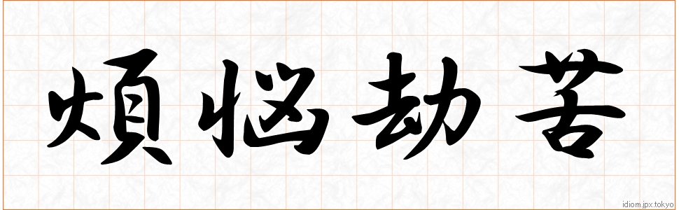 煩悩劫苦 (ぼんのうごうく)Kanji et modèles d’écriture |