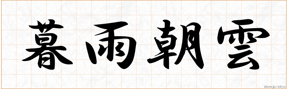 暮雨朝雲 (ぼうちょううん)Kanji et modèles d’écriture |