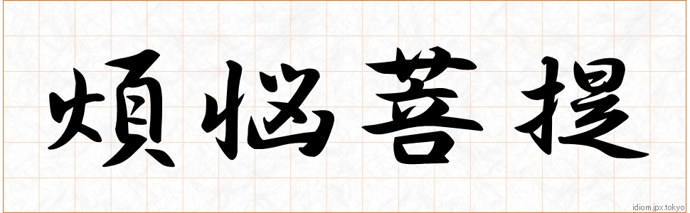 Exemple de 「ぼんのうぼだい」 Idiomes en quatre caractères et kanji