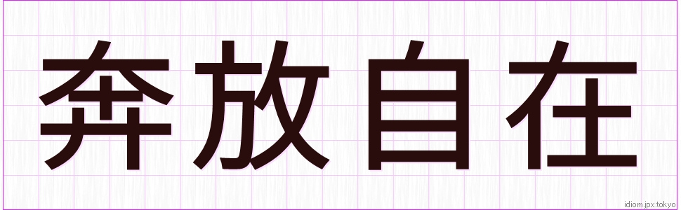 奔放自在 (ほんぽうじざい)Kanji et modèles d’écriture |