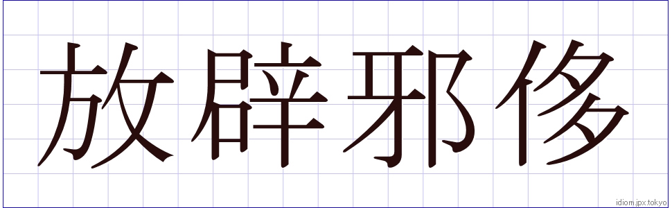 放辟邪侈 (ほうへきじゃし)Kanji et modèles d’écriture |