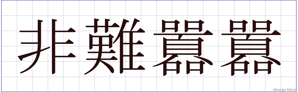 非難囂囂 (ひなんごうごう)Kanji et modèles d’écriture |