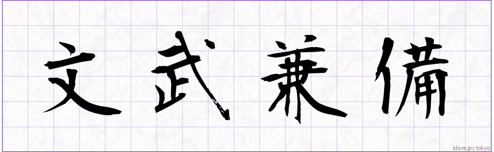 文武兼備 (ぶんぶけんび)Kanji et modèles d’écriture |