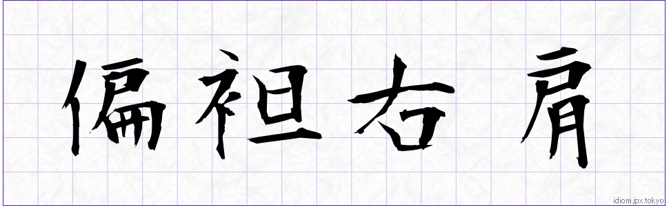 偏袒右肩 (へんたんうけん)Kanji et modèles d’écriture |