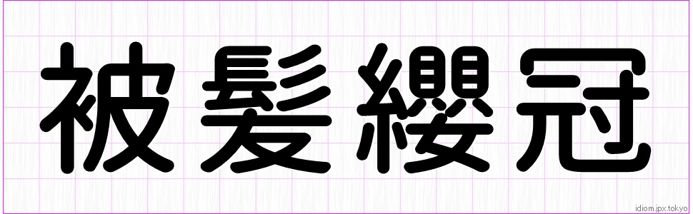 被髪纓冠 (ひはつえいかん)Kanji et modèles d’écriture |