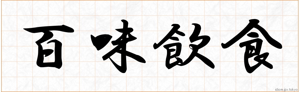 百味飲食 (ひゃくみのおんじき)Kanji et modèles d’écriture |
