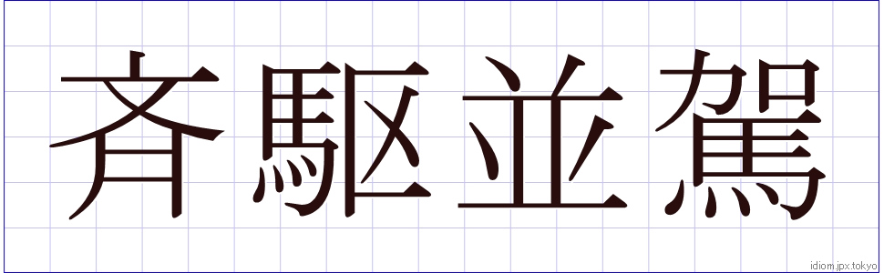 斉駆並駕 (せいくへいが)Kanji et modèles d’écriture |