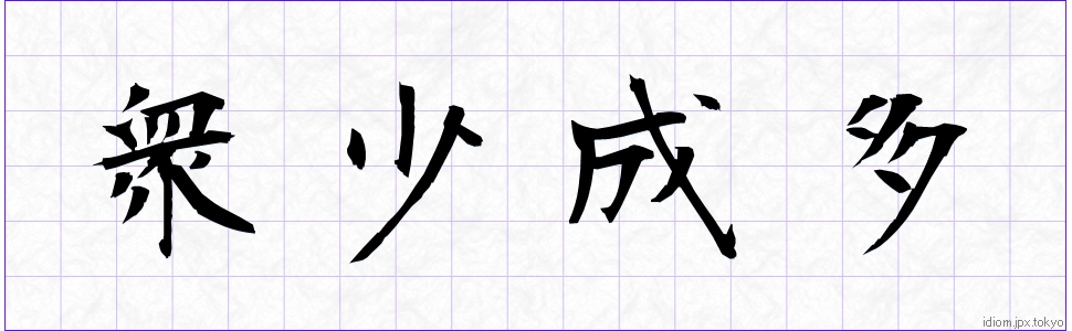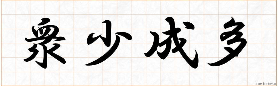衆少成多 (しゅうしょうせいた)Kanji et modèles d’écriture |
