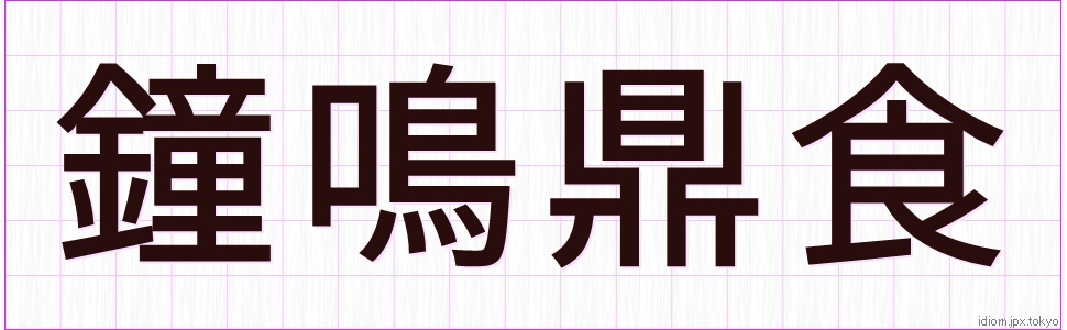 鐘鳴鼎食 (しょうめいていしょく)Kanji et modèles d’écriture |