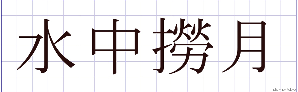 水中撈月 (すいちゅうろうげつ)Kanji et modèles d’écriture |