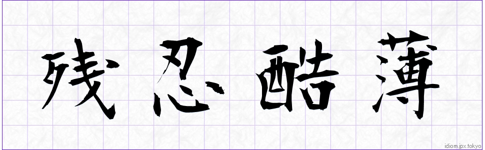 残忍酷薄 (ざんにんこくはく)Kanji et modèles d’écriture |