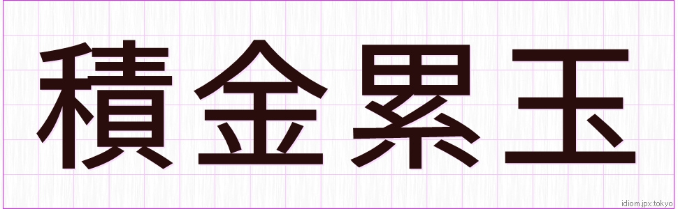積金累玉 (せききんるいぎょく)Kanji et modèles d’écriture |