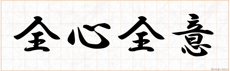 全心全意 (ぜんしんぜんい)Kanji et modèles d’écriture |
