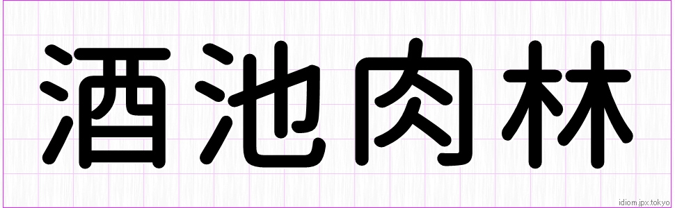 酒池肉林 (しゅちにくりん)Kanji et modèles d’écriture |