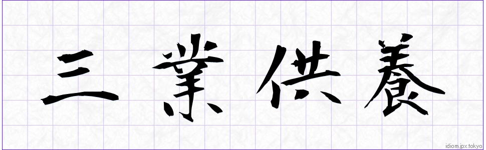 三業供養 (さんごうくよう)Kanji et modèles d’écriture |