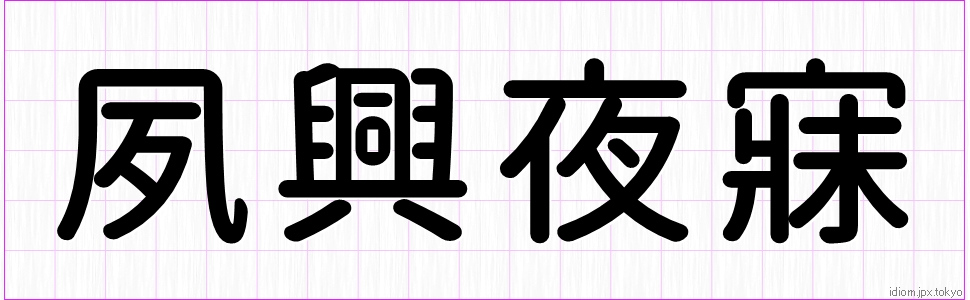 夙興夜寐 (しゅくこうやび)Kanji et modèles d’écriture |