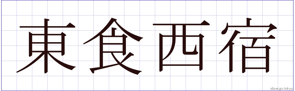 東食西宿 (とうしょくせいしゅく)Kanji et modèles d’écriture |