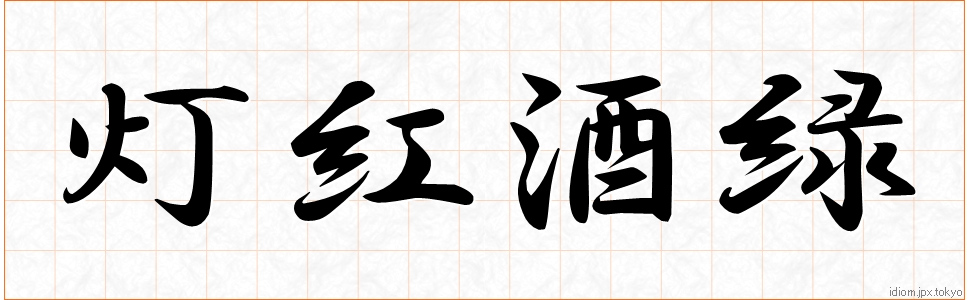 灯紅酒緑 (とうこうしゅりょく)Kanji et modèles d’écriture |