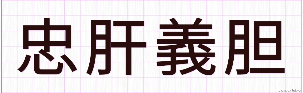 忠肝義胆 (ちゅうかんぎたん)Kanji et modèles d’écriture |