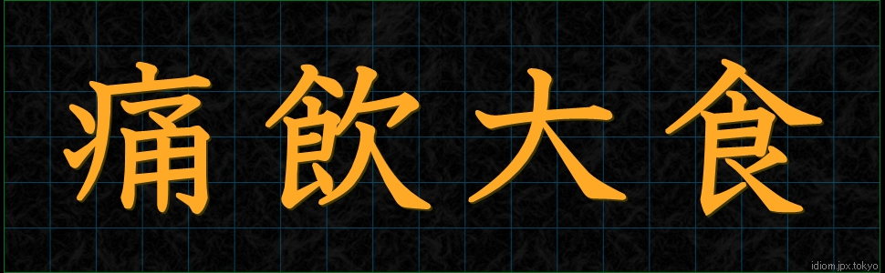 痛飲大食 (つういんたいしょく)Kanji et modèles d’écriture |