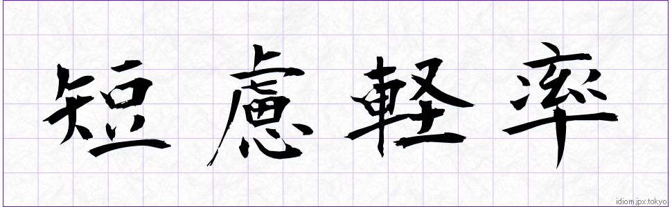 短慮軽率 (たんりょけいそつ)Kanji et modèles d’écriture |