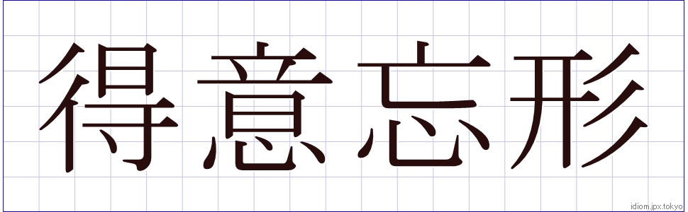 得意忘形 (とくいぼうけい)Kanji et modèles d’écriture |