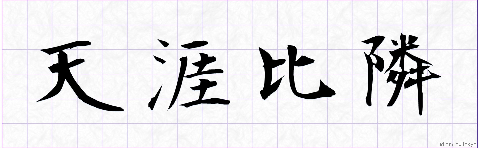 天涯比隣 (てんがいひりん)Kanji et modèles d’écriture |