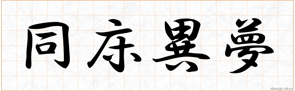 同床異夢 (どうしょういむ)Kanji et modèles d’écriture |