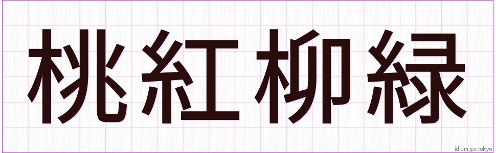 桃紅柳緑 (とうこうりゅうりょく)Kanji et modèles d’écriture |