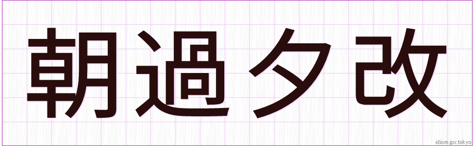 朝過夕改 (ちょうかせきかい)Kanji et modèles d’écriture |