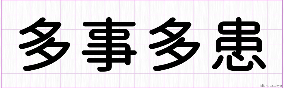 多事多患 (たじたかん)Kanji et modèles d’écriture |